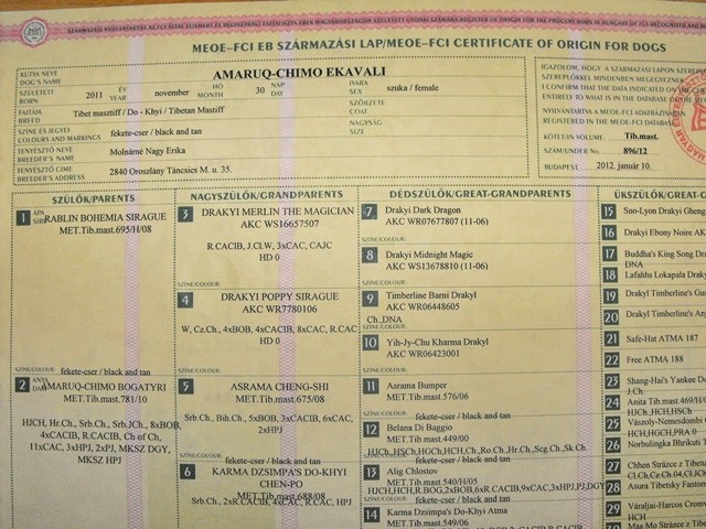 Pedigree / Törzskönyv